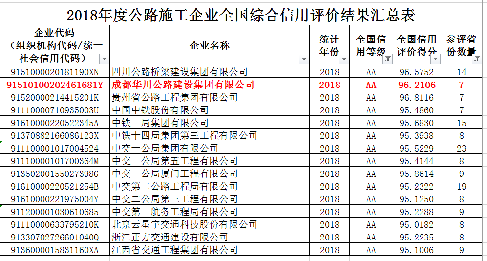 交通運(yùn)輸部于2019年6月26日上午對(duì)2018年度公路施工企業(yè)全國(guó)綜合信用評(píng)價(jià)結(jié)果進(jìn)行公示,集團(tuán)公司榮獲 “AA”級(jí)。