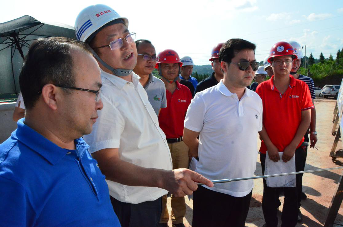 7月31日,沖刺年底通車目標(biāo),三大攻堅(jiān)戰(zhàn)首戰(zhàn)“大戰(zhàn)60天”即將告一段落,奮戰(zhàn)90天大幕即將拉開大幕之際,集團(tuán)董事長、總裁謝應(yīng)文親臨一線,督戰(zhàn)營達(dá)項(xiàng)目。營達(dá)公司總經(jīng)理謝應(yīng)武、指揮長甘立剛、LJ03、LJ04合同段項(xiàng)目負(fù)責(zé)人陪同視察。