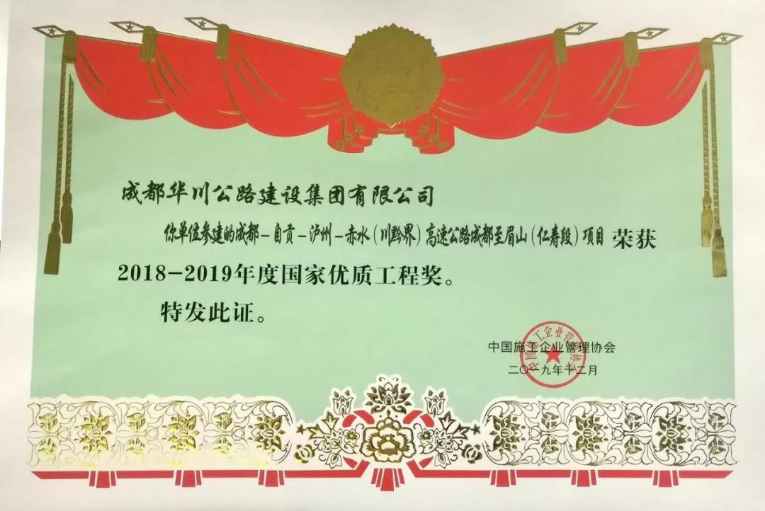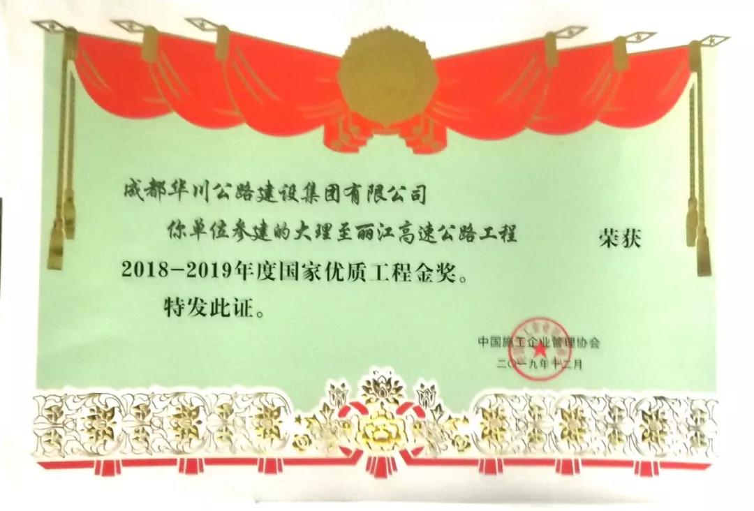 集團(tuán)在2018年組織申報(bào)的“大理-麗江高速公路”、“成都-自貢-瀘州-赤水高速成仁段”項(xiàng)目于今年12月分別榮獲“國家優(yōu)質(zhì)工程金獎”、“國家優(yōu)質(zhì)工程獎”兩項(xiàng)殊榮,實(shí)現(xiàn)了集團(tuán)參建工程在國家優(yōu)質(zhì)工程(金)獎上的突破。