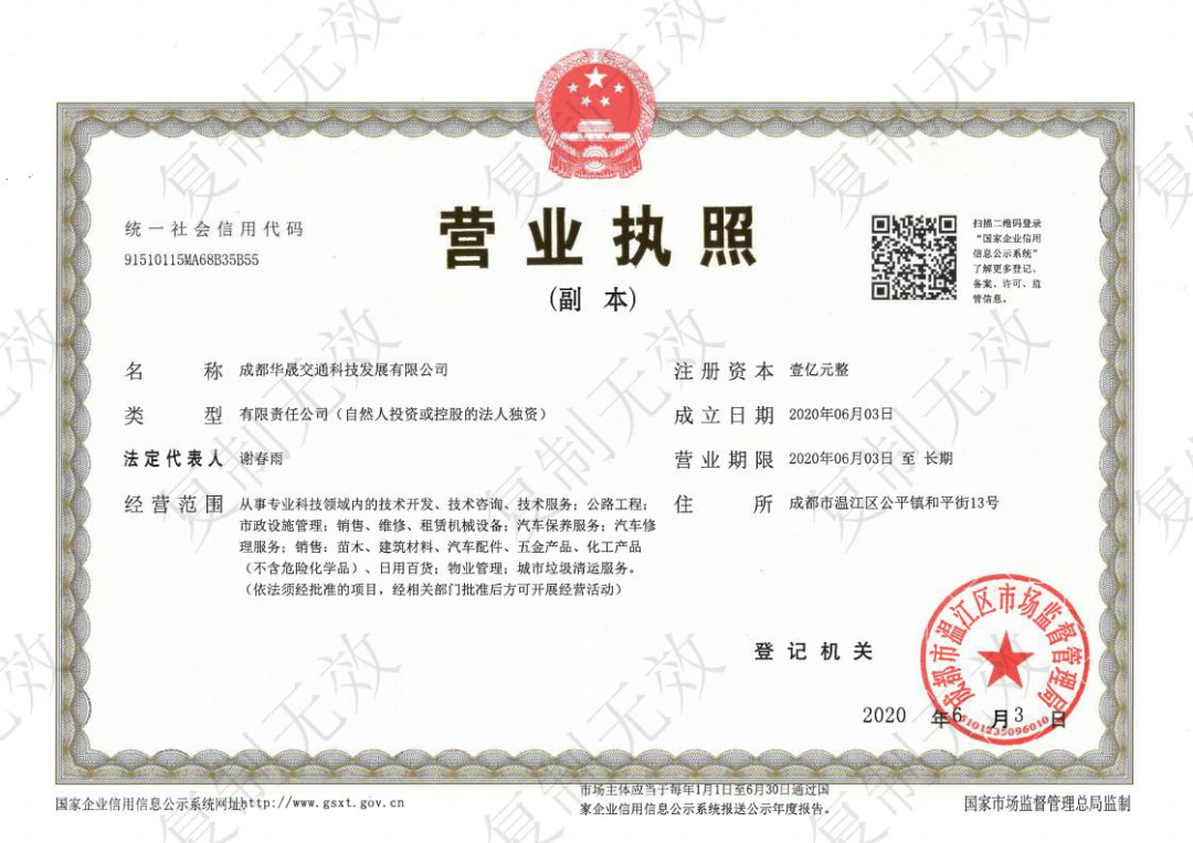 為滿足集團投資的高速公路運營養(yǎng)護需要,結合交通科技行業(yè)發(fā)展趨勢,充分整合交通科技資源,延伸拓展“投資建設運營”全產(chǎn)業(yè)鏈綜合競爭實力。經(jīng)集團七屆二次董事會審議批準,6月3日集團注冊成立了全資子公司成都華晟交通科技發(fā)展有限公司。