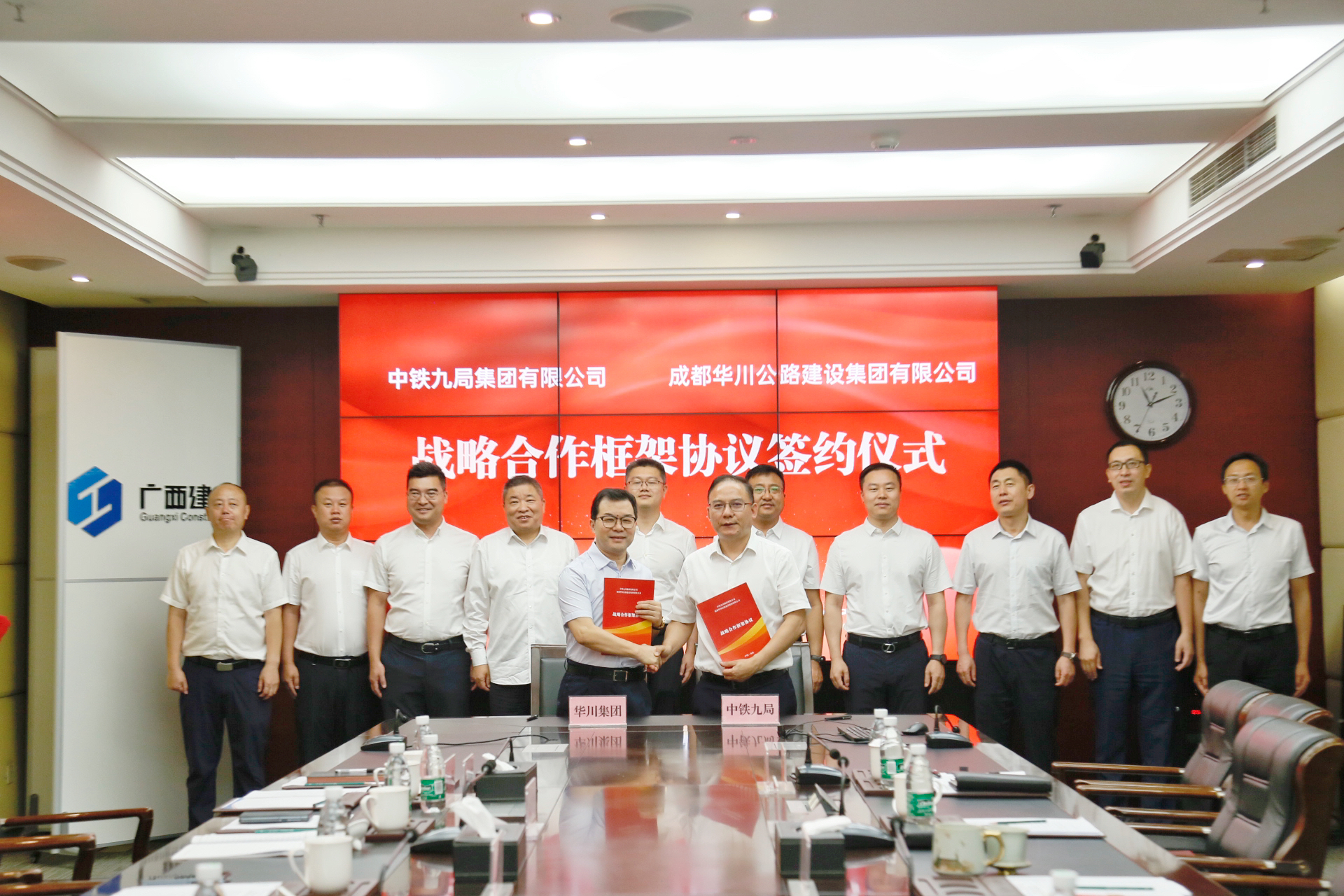 6月13日,集團(tuán)與中鐵九局集團(tuán)有限公司簽署戰(zhàn)略合作框架協(xié)議,雙方就加強(qiáng)溝通、深化合作模式、擴(kuò)寬合作領(lǐng)域等方面達(dá)成共識(shí)。中鐵九局集團(tuán)黨委書記、董事長張文杰,集團(tuán)黨委書記、董事長、總經(jīng)理謝應(yīng)文出席簽約儀式并代表雙方簽署戰(zhàn)略合作協(xié)議。