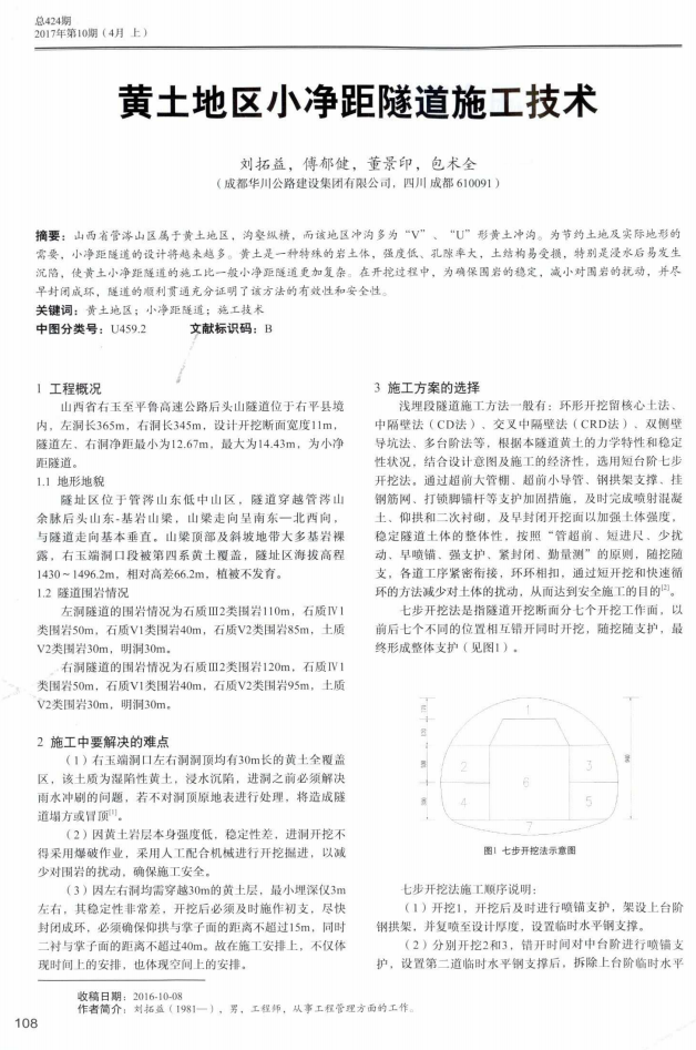 5月12日下午,山西右平項(xiàng)目部收到來自中央級期刊《交通世界》(旬刊)編輯部寄來的學(xué)術(shù)論文刊登賀信,祝賀由成都華川公路建設(shè)集團(tuán)有限公司山西項(xiàng)目部項(xiàng)目總工程師劉拓益,項(xiàng)目副經(jīng)理董景印、包術(shù)全,項(xiàng)目副總工傅郁建合作的學(xué)術(shù)論文《黃土地區(qū)小凈距隧道施工技術(shù)》被采用發(fā)表,該項(xiàng)學(xué)術(shù)論文的發(fā)表為集團(tuán)公司在科技成果方面再次添磚加瓦,同時表明了山西項(xiàng)目在科技成果的創(chuàng)新工作上再上了一個新的臺階。