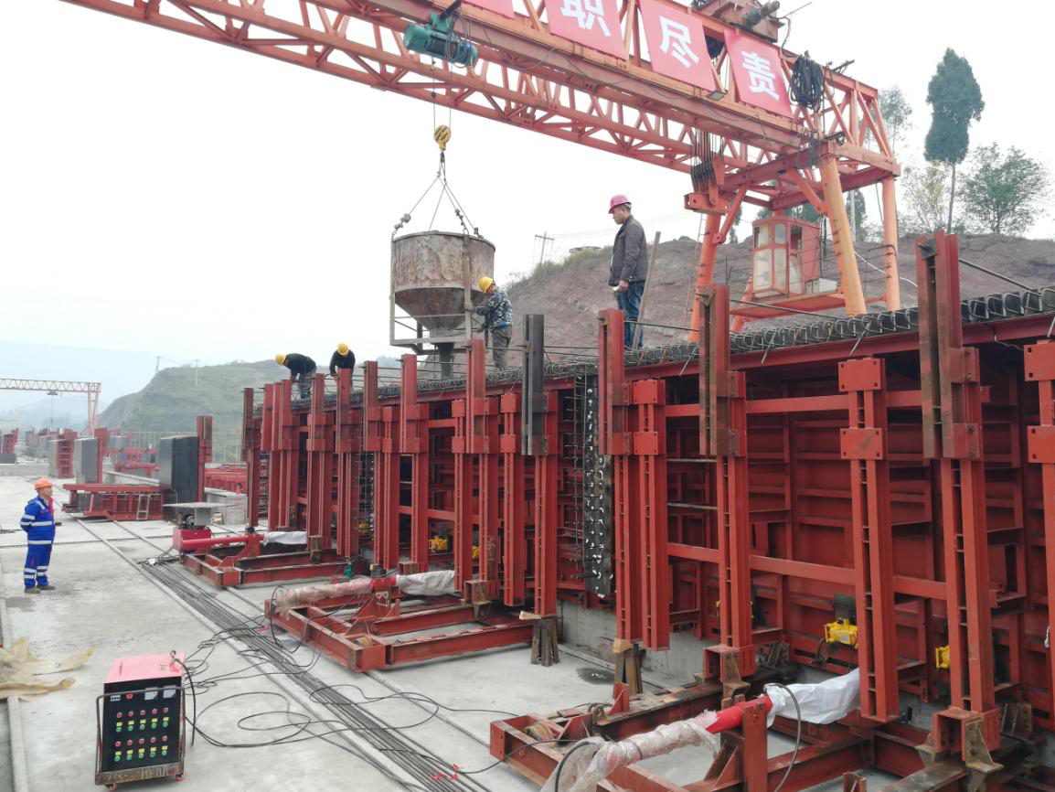此次澆筑的T梁為州河特大橋右幅第一跨1-2#中梁,梁長(zhǎng)40米,高2.5米,頂面寬1.6米,采用C50砼,液壓模板施工工藝,實(shí)際澆筑量46立方。為確保澆筑成功,在開(kāi)工前,項(xiàng)目部圍繞首件工程方案多次組織相關(guān)人員討論,完善,力求保質(zhì)保量,組織工人集中學(xué)習(xí)交底;施工時(shí)項(xiàng)目部管理人員、駐地高監(jiān)、現(xiàn)場(chǎng)監(jiān)理全程把控。